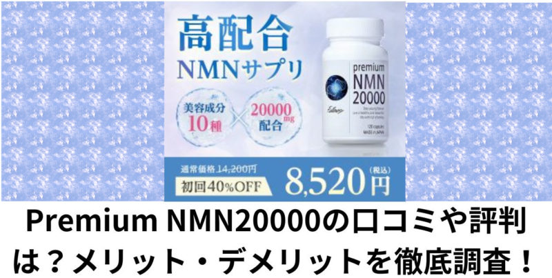 Premium NMN20000の口コミや評判、メリット・デメリットを知りたい方は記事をご確認ください。
